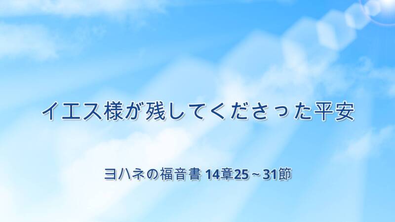 今日のテーマは、「イエス様が残してくださった平安」です。